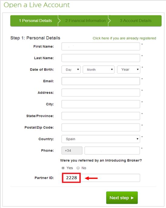 - Completa todos tus datos personales. Introduce el codigo: "Partner ID" = 2228